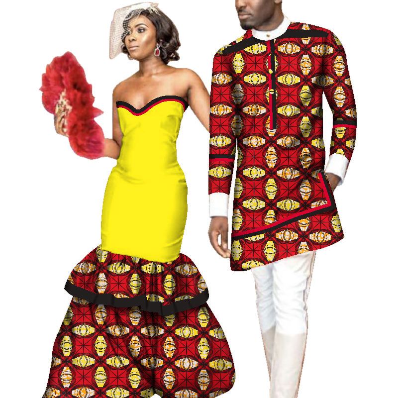 New African Clothing For Couples Wedding Women Sexy Backless Sleeveless Slim Dresses Party Dress Men Long Shirt Gown Wyq159